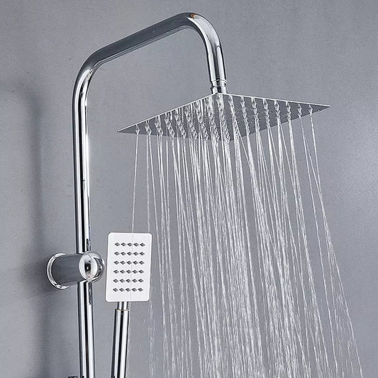 Modern Concealed Square Shower Brass Valve Mixer Twin Head Shower Set Chrome