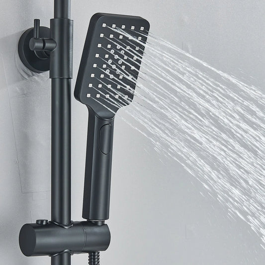 Black Exposed Bathroom Shower Twin Head Large Bar Set Square Valve Rail Hose Tap