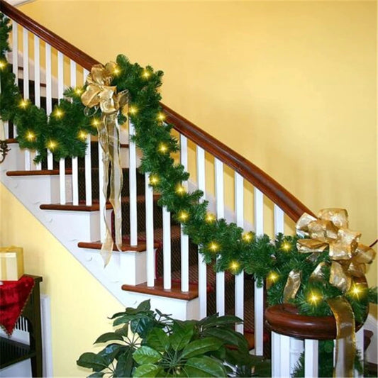 9ft Bushy Pine XMAS Christmas Garland with Lights for Stairs Outdoor Decorations