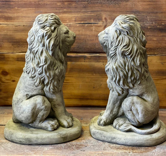 LION PAIR Stone Garden Ornament 40cm Statue