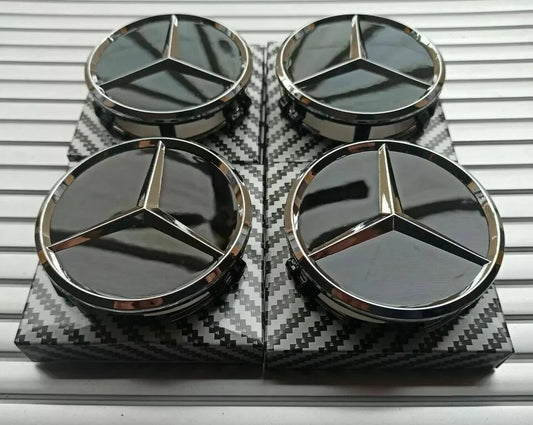 4 x Black Mercedes Benz 75mm Alloy Wheel Centre Caps AMG A B C E S M Class Hub.