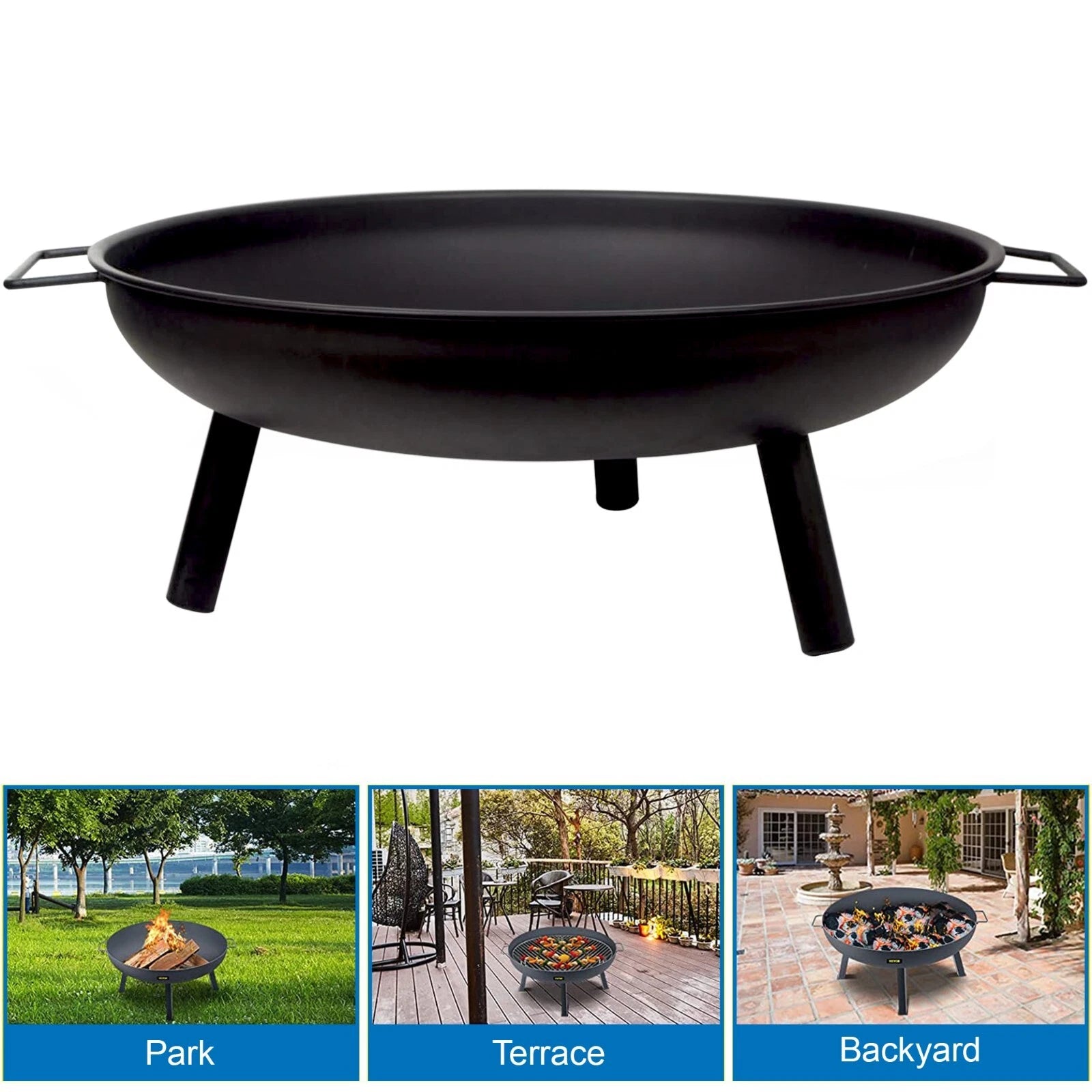 LARGE SIZE DESIGN: The fire fit is 58cm , the fireplace is very large to storage enough wood for a large fire. Carrying Handles allows the fire pit to be moved anywhere according to your needs.
