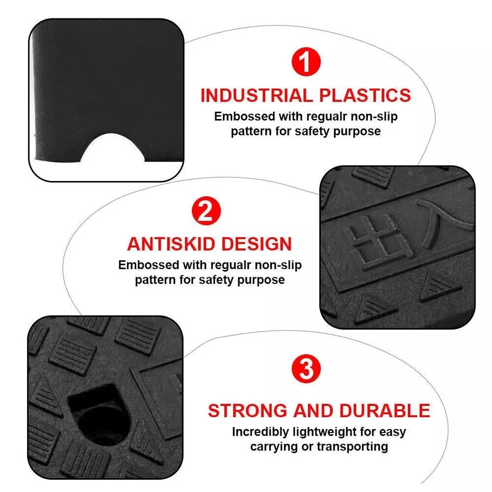 2. HIGH QUALITY & DURABLE: Our curb ramp is constructed from durable and high quality materials. Made of industrial grade compound plastic material or Polypropylene (PP) which is a strong type of material & is built to last.