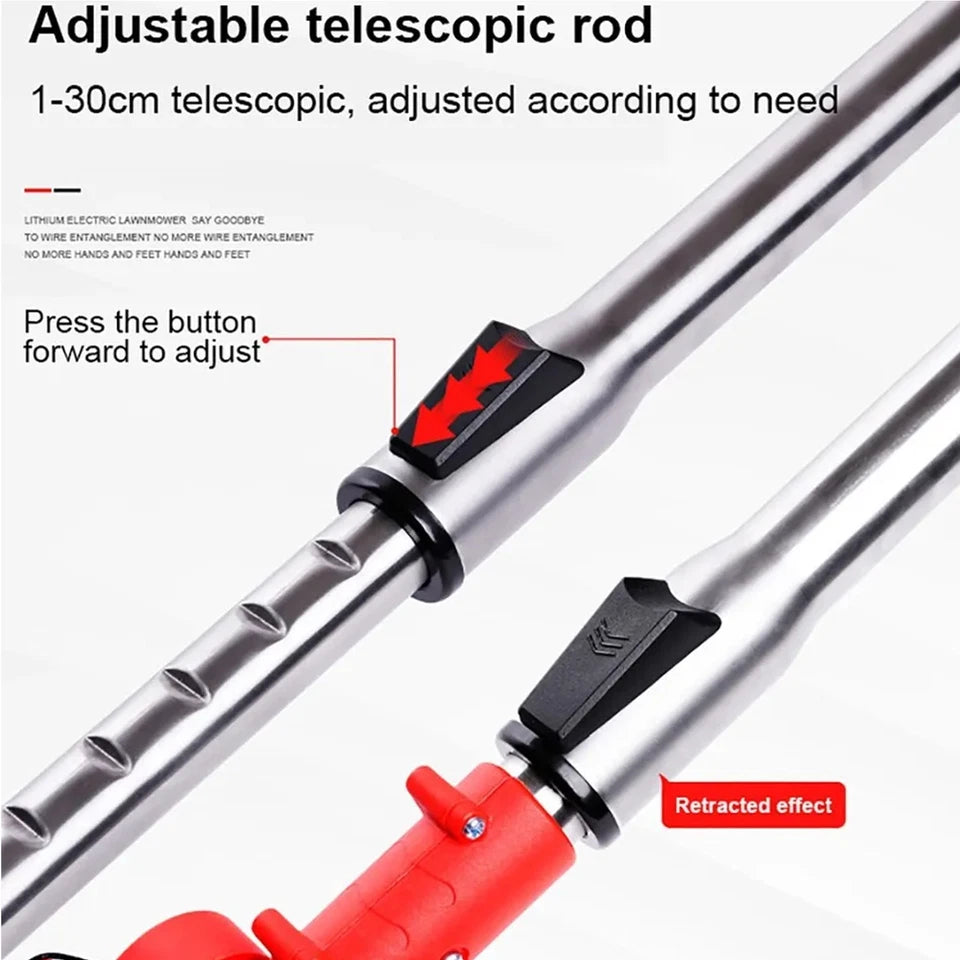 【Adjustable length and angle】The length of the telescopic rod of the string trimmer can be adjusted, and the length of the electric weed eater can be adjusted freely from 86cm-125cm. grass cutter with an adjustable handle can help your hands find the most comfortable position for increased comfort and control; the grass cutter machine head can be adjusted at will (0-90°) for easy work in sloping places.