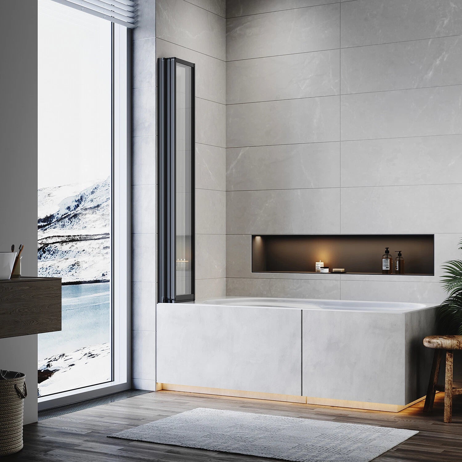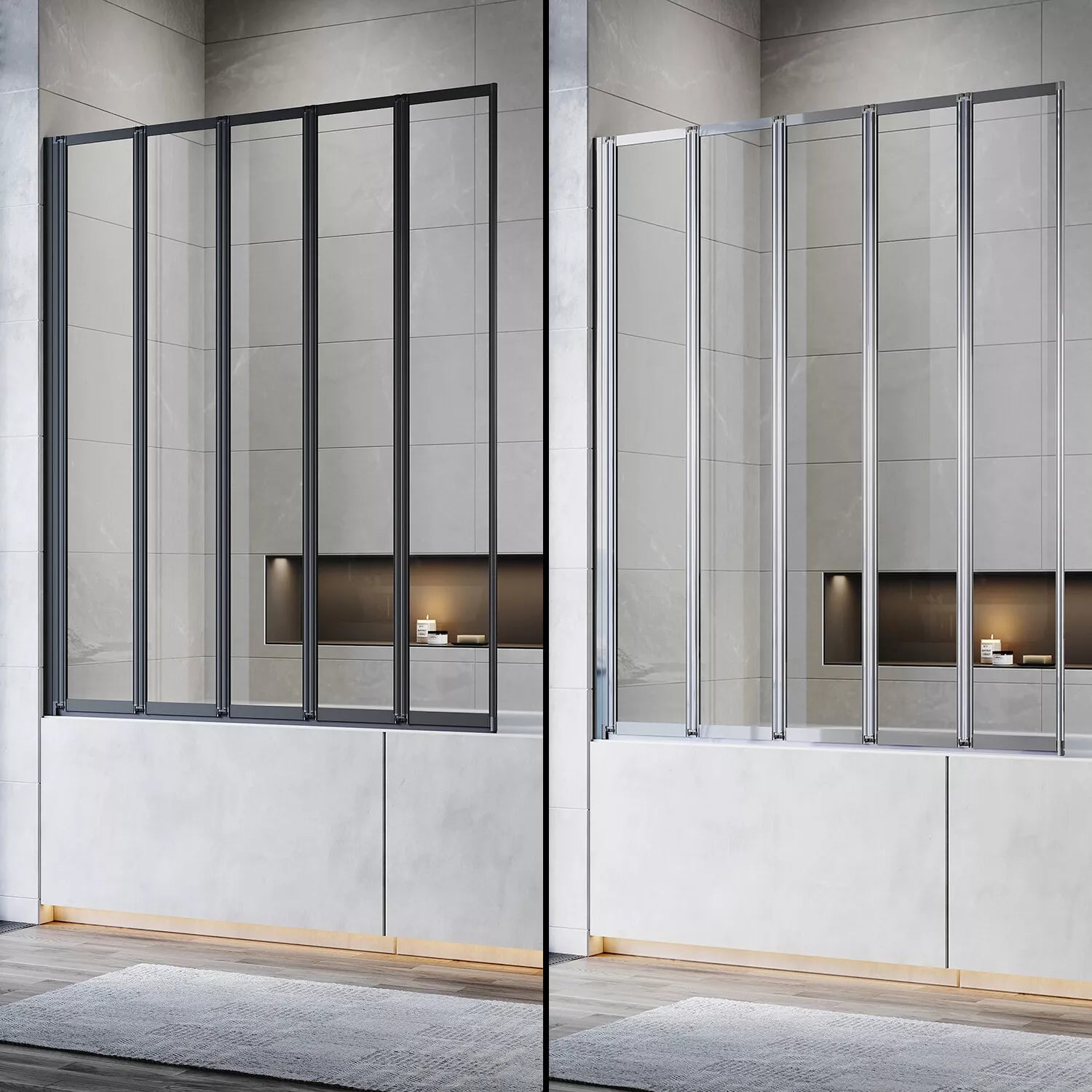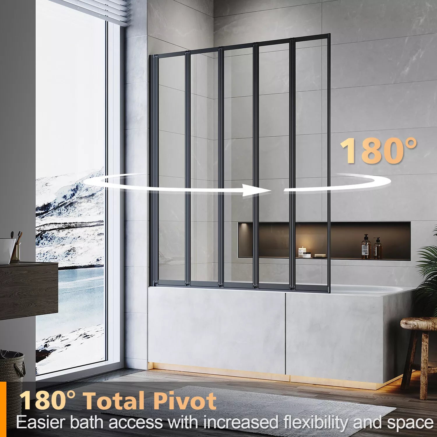 5 Folding Bath Shower Screen Black / Chrome Frame Wet Room Glass Panel 1200 x 1400mm