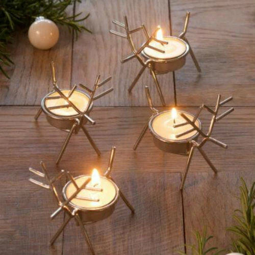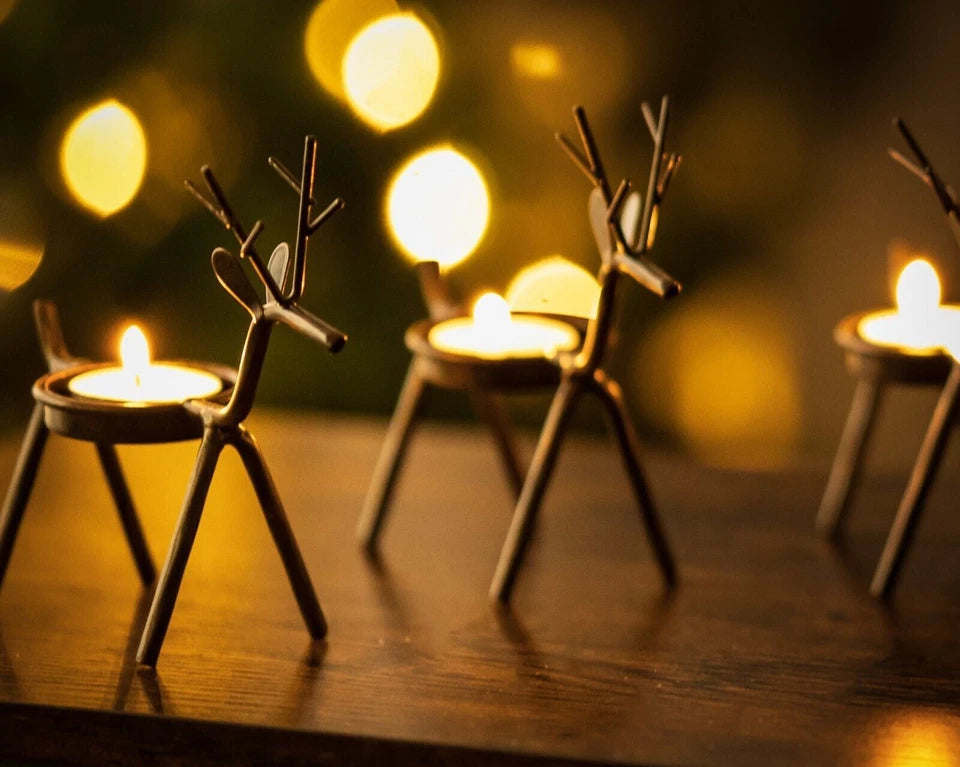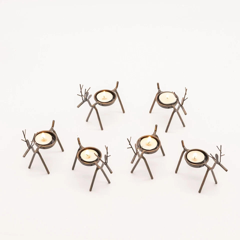 6x Christmas Reindeer Tea Light Candle Holders & Tealights Xmas Home Decor Gift