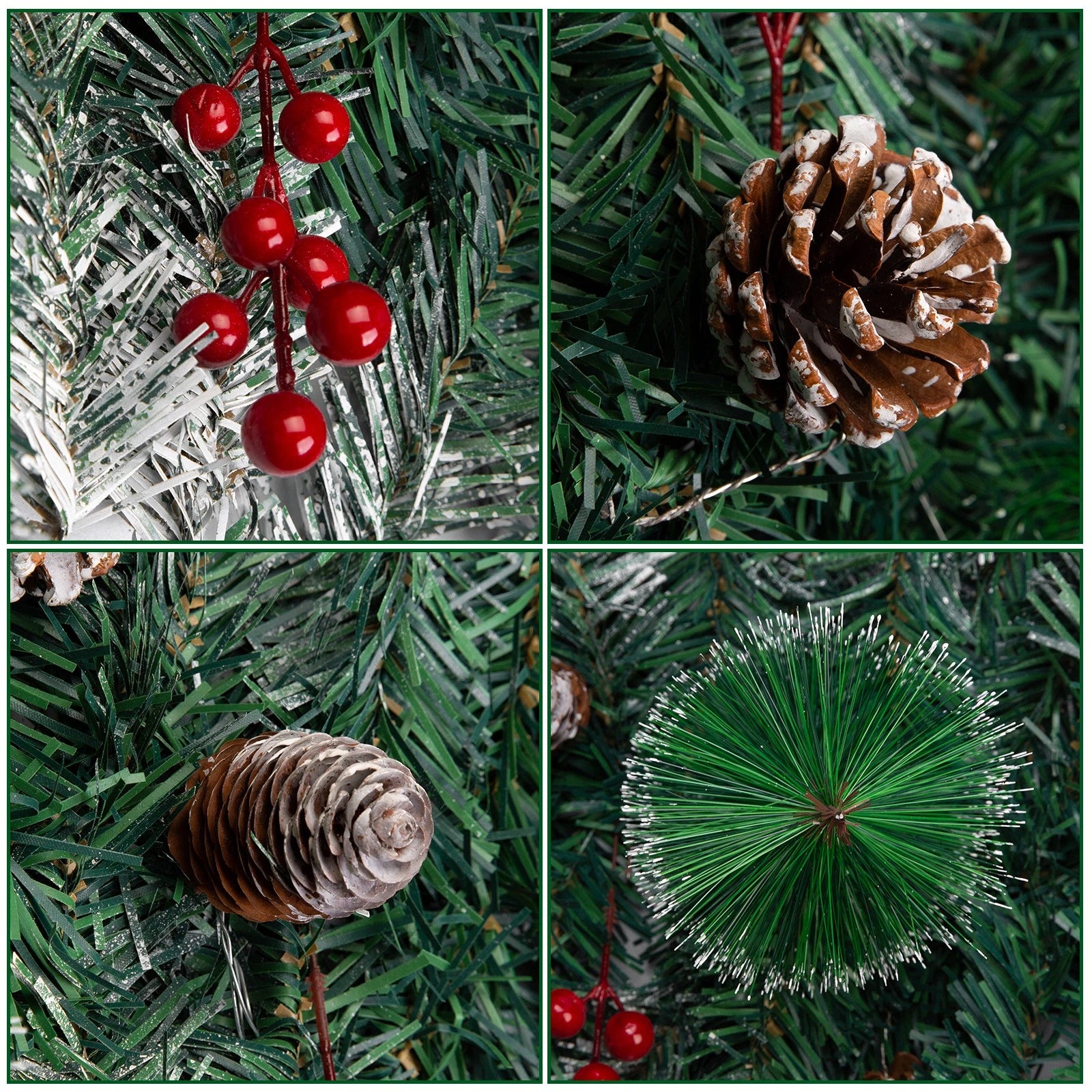 🌸【Vivid look】: The total length of the Christmas garland is 2.7m / 9ft, and composed of 220 branches, Pine needles , PE leaf mix, 11 round pine cones, 11 long pine cones, 13 bunches of red berries, showing its lush shape, real elegance, and charming like a real thing.