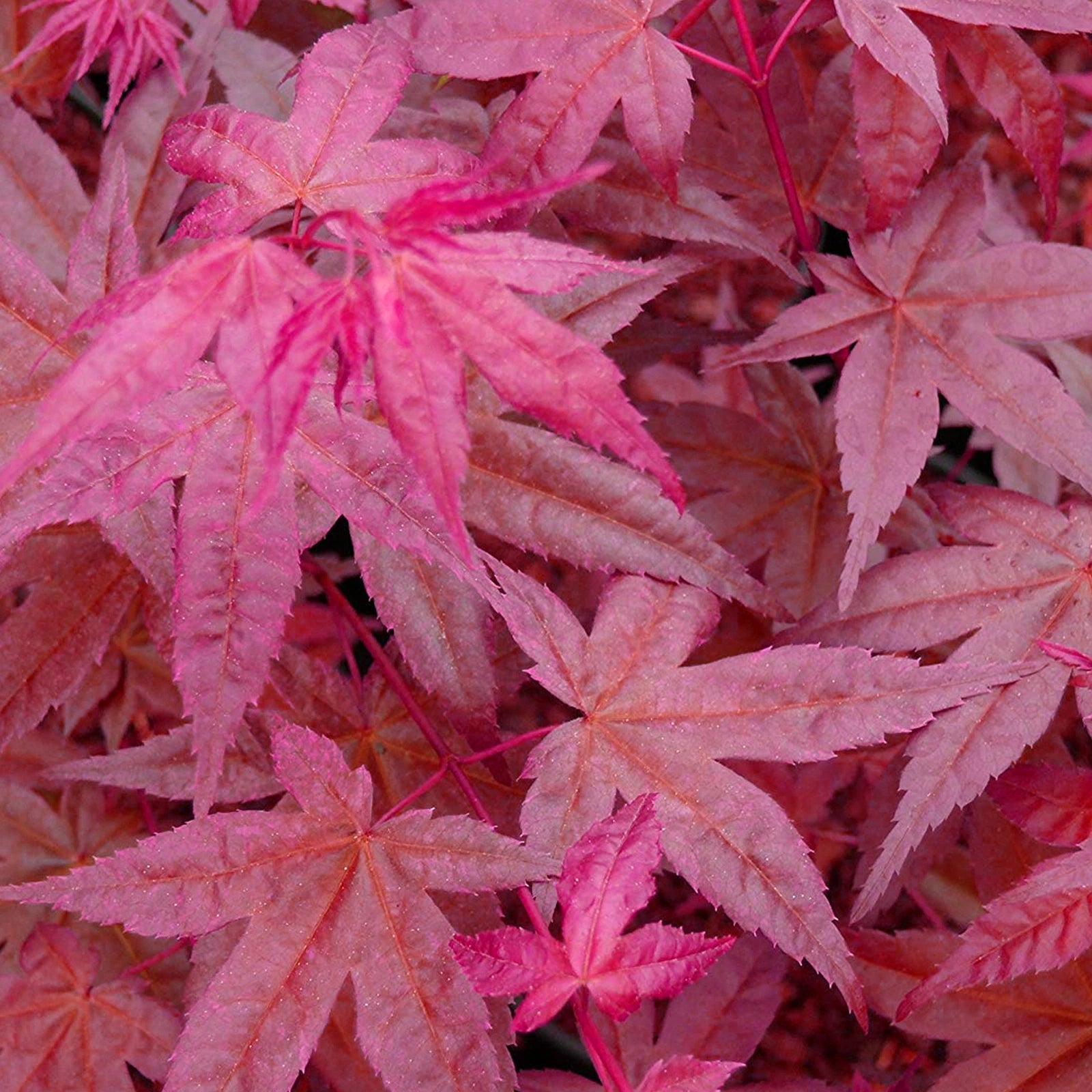 Beni-Maiko is an extremely popular deciduous garden acer, renowned for it's bright foliage throughout spring and autumn. Starting as it means to go on, this variety initally develops brightly coloured pinkish-red lobed leaves during spring, before being joined by a touch of green during the summer. As we move into autumn, the brightness of the foliage dims ever so slightly, producing vibrant bursts of orange and red colours befitting of the time of year.