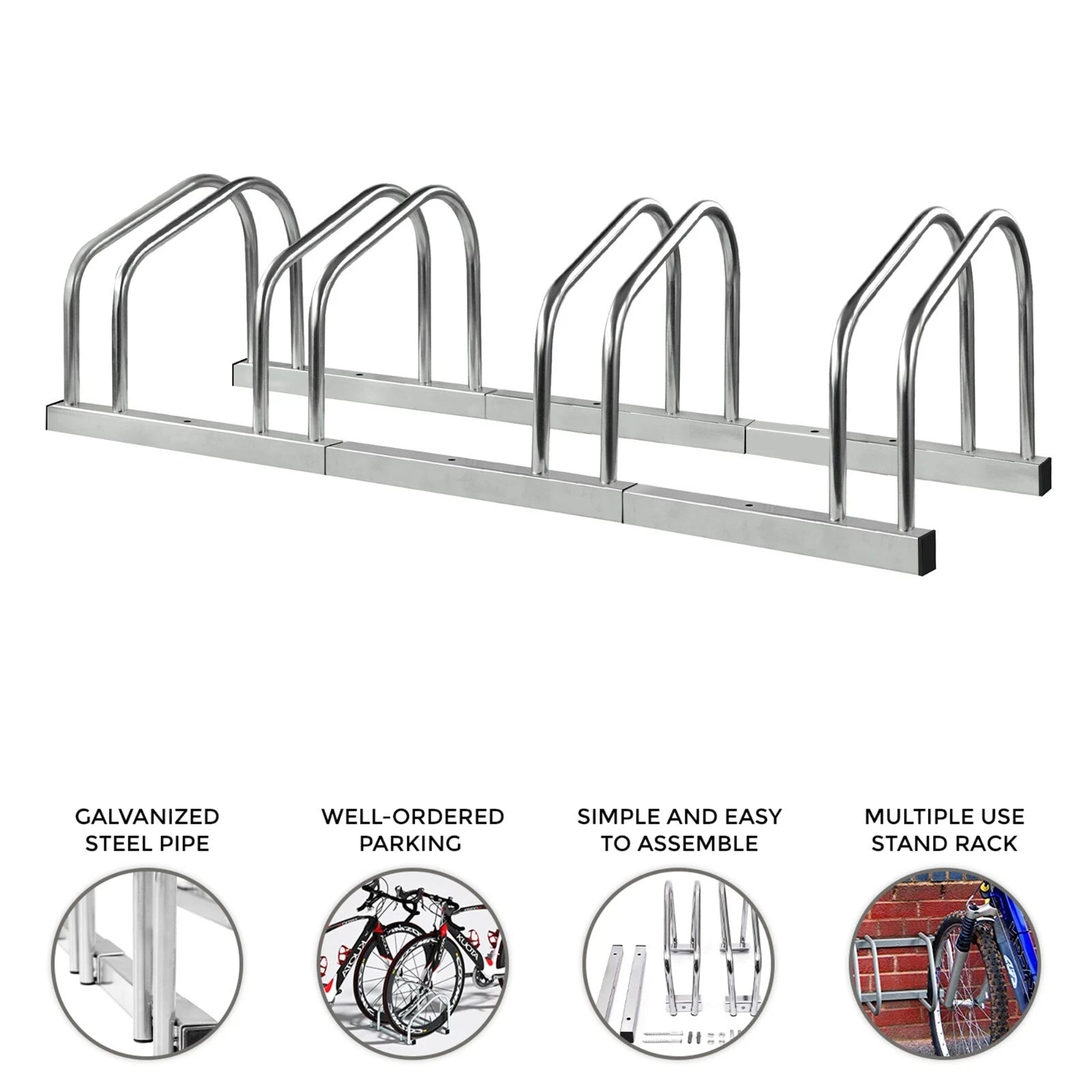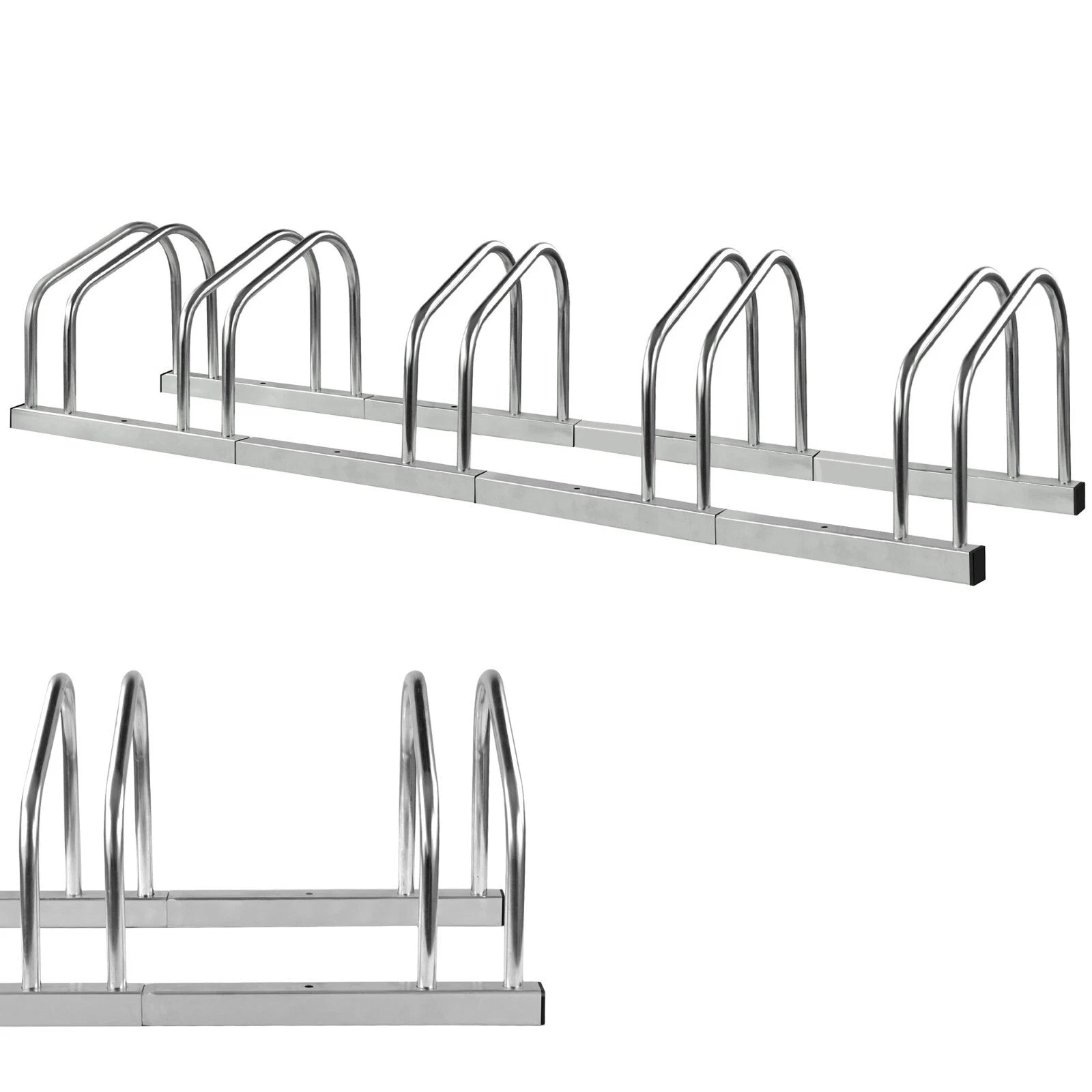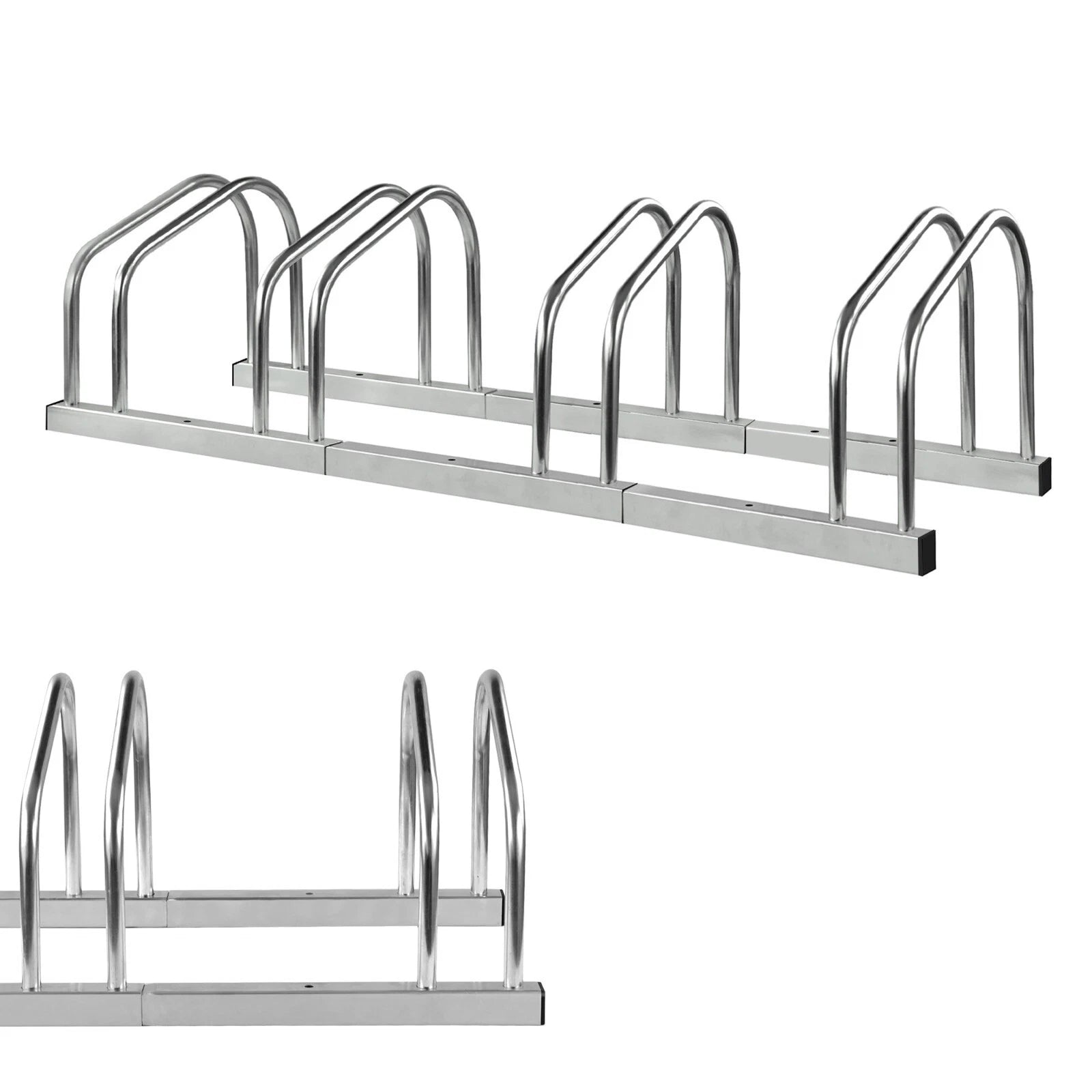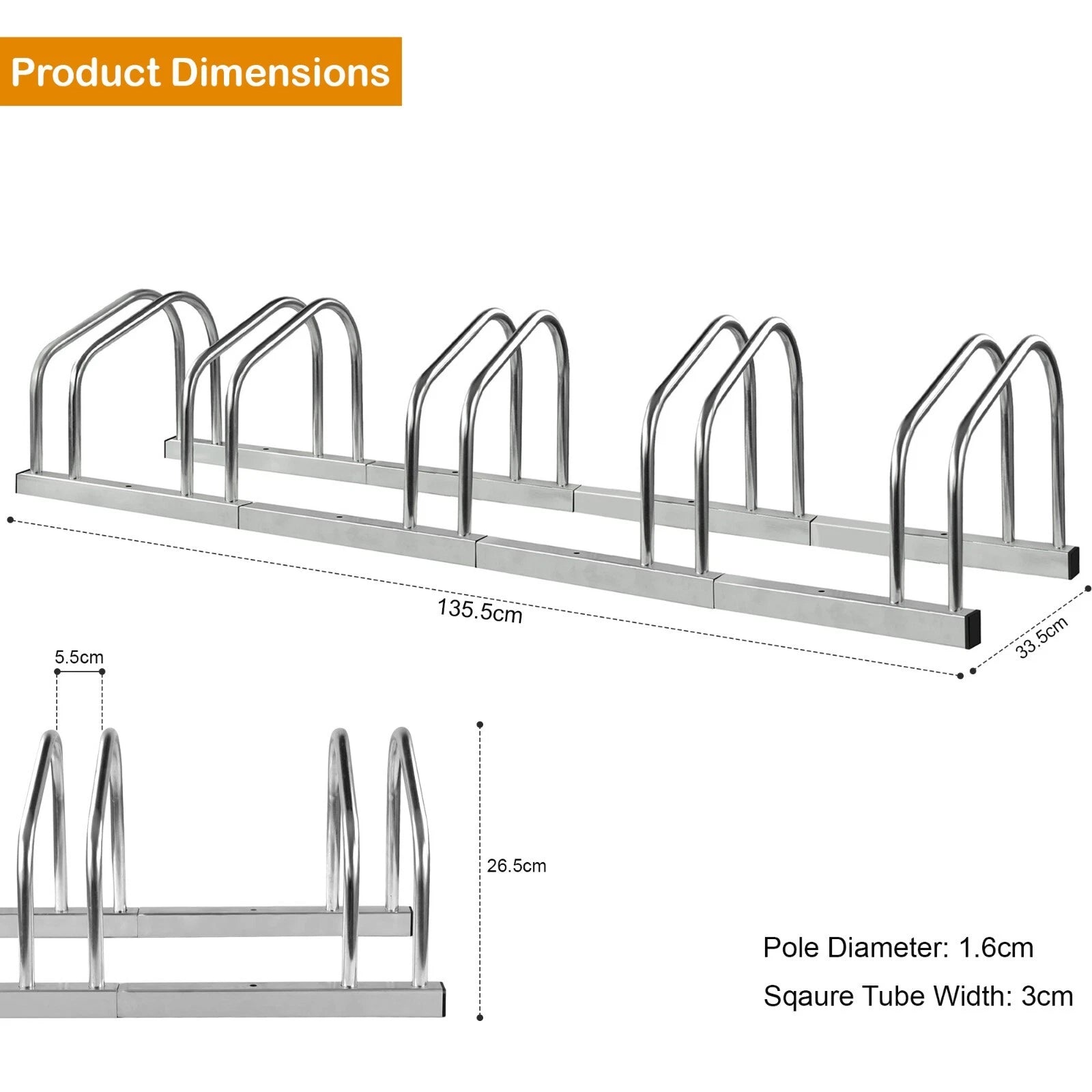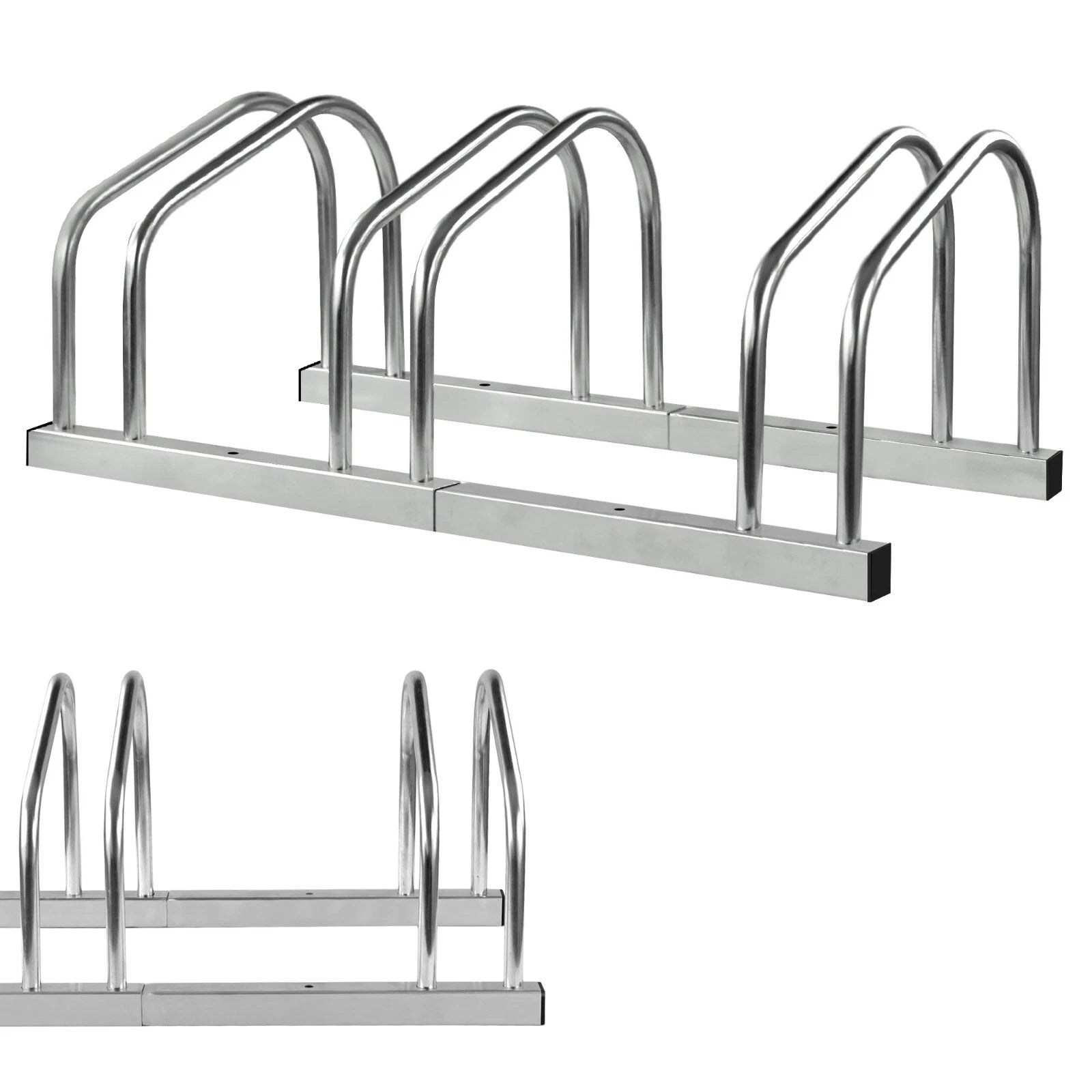 Heavy duty durable galvanized steel pipe constructed bicycle parking rack floor stand holder storage rack stands are ideal for storing bikes securely in sheds, garages and garden to protect bikes form scratches or damages, as well as making the parking well-ordered. The bicycle stands are pre-drilled mounting holes on the rack, completing with fixings. It has features with premium galvanized steel pipe surface ensure the stand rack will not get rusty over the time and durable to use for long term use. The bike stand racks are available in four sizes to park 2, 3, 4 or 5 bikes.