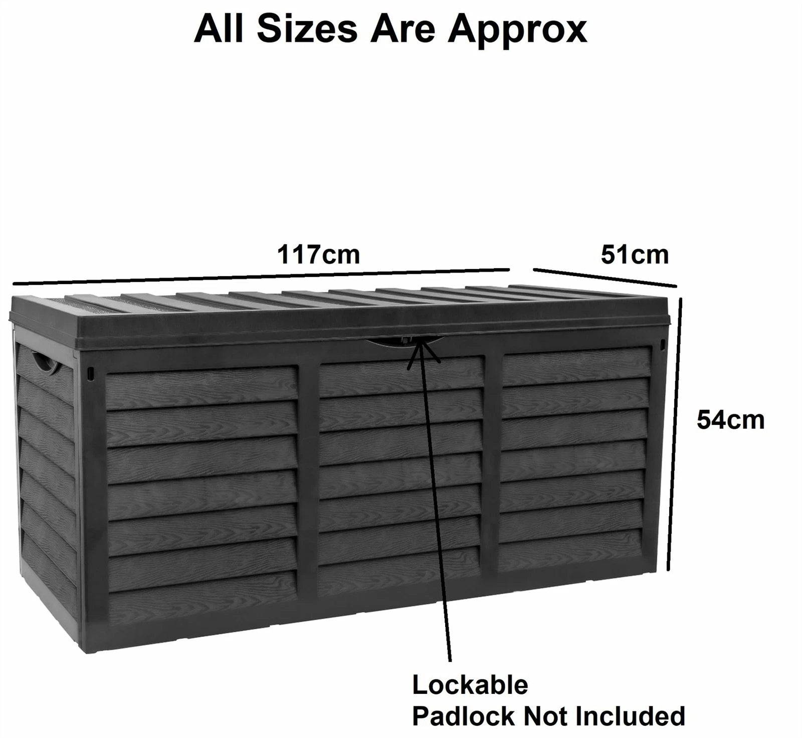 Black 320L Plastic Storage Box Garden Outdoor Shed Utility Cushion Chest Truck