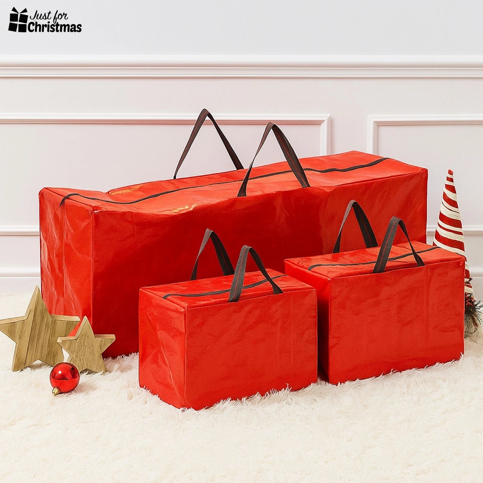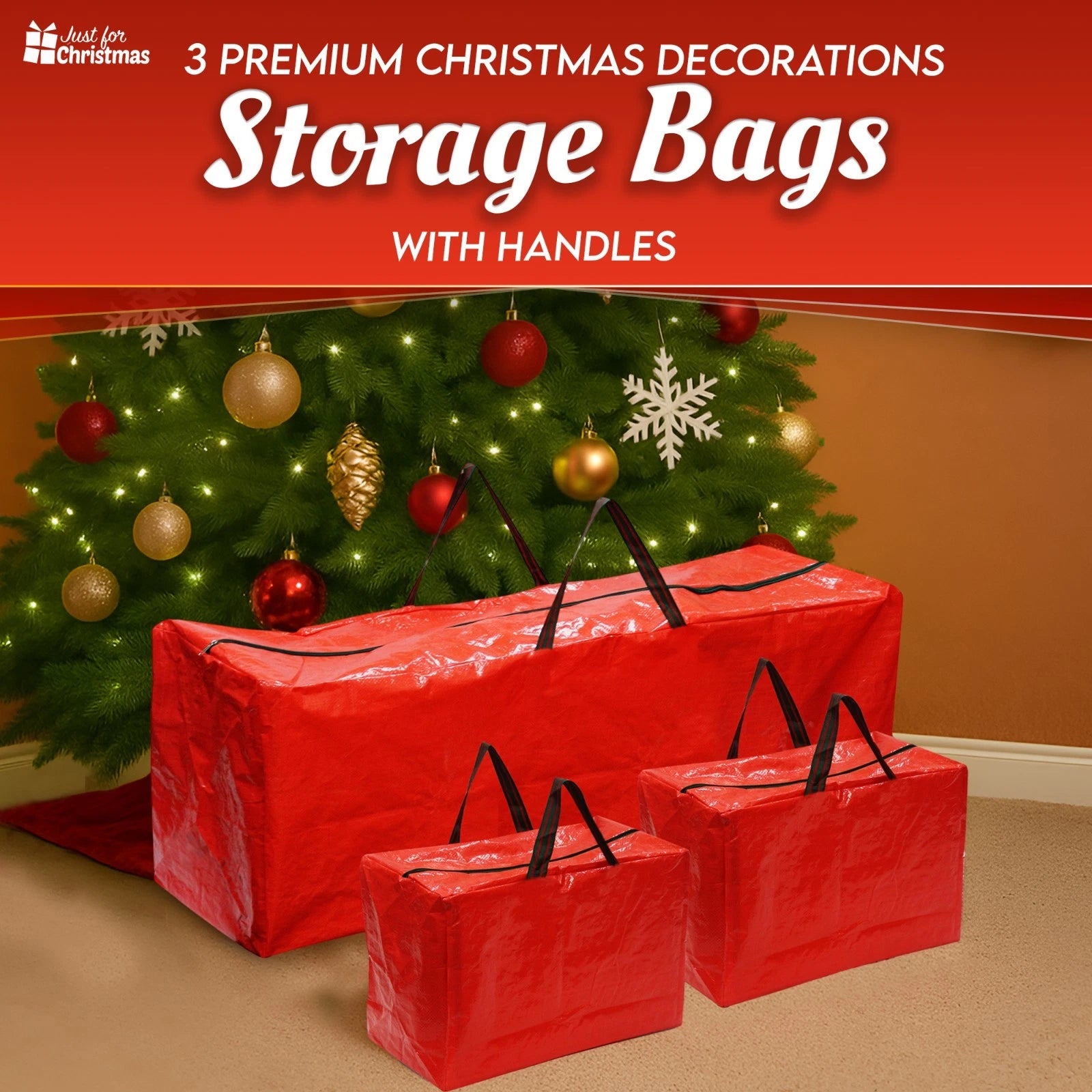 Christmas Storage Bags Xmas Tree Decorations Storage Zipper Bags with Handles x3