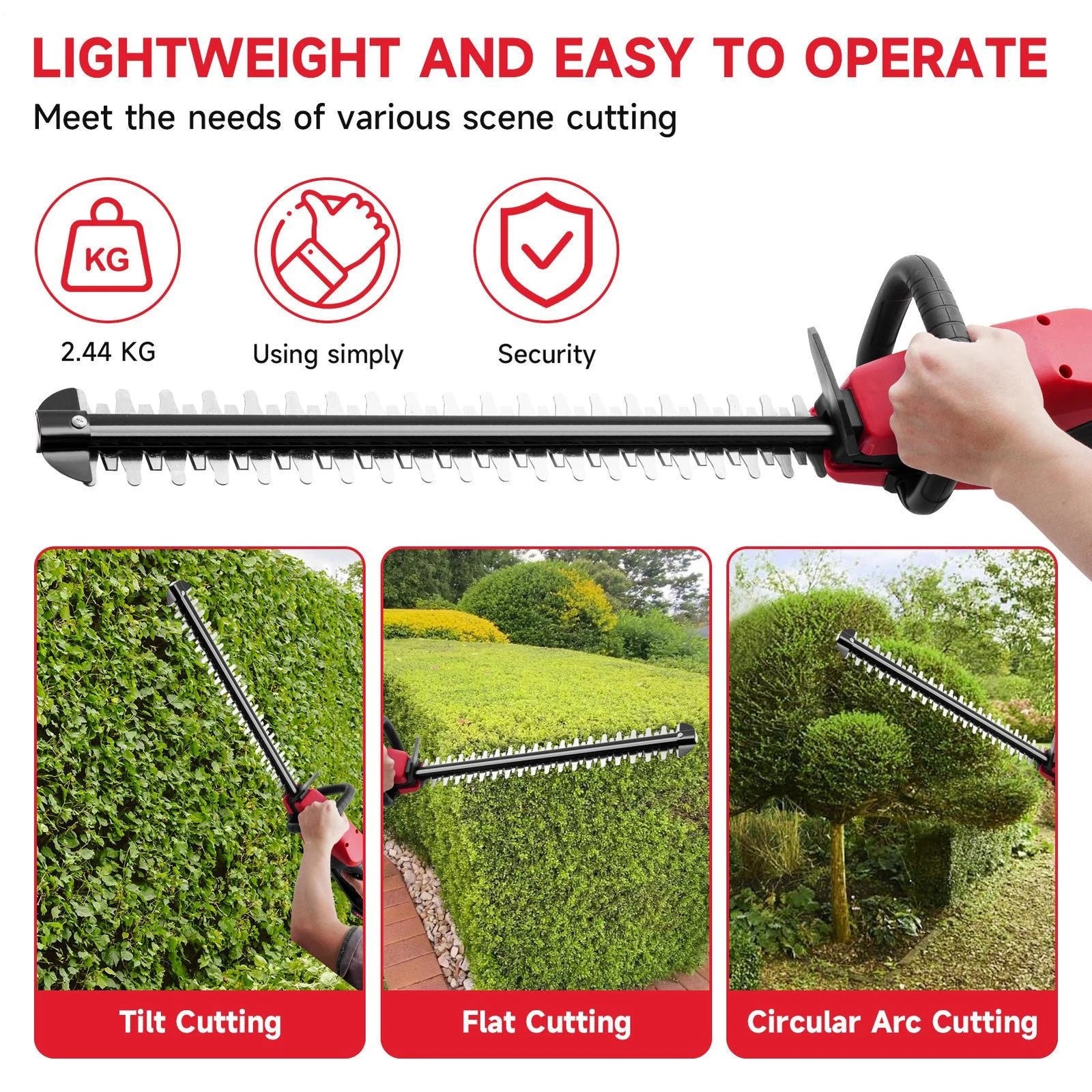 3,Efficient trimming: The shrub trimmer is lightweight and significantly lighter than other large or fully functional trimmers. This way you cut branches easily and evenly. Also suitable for women and the elderly. Thanks to the carefully developed brushless motor, the rear shear achieves a maximum speed of 1800 rpm, thus enabling more efficient cutting. Save valuable time, energy and money when cutting hedges.