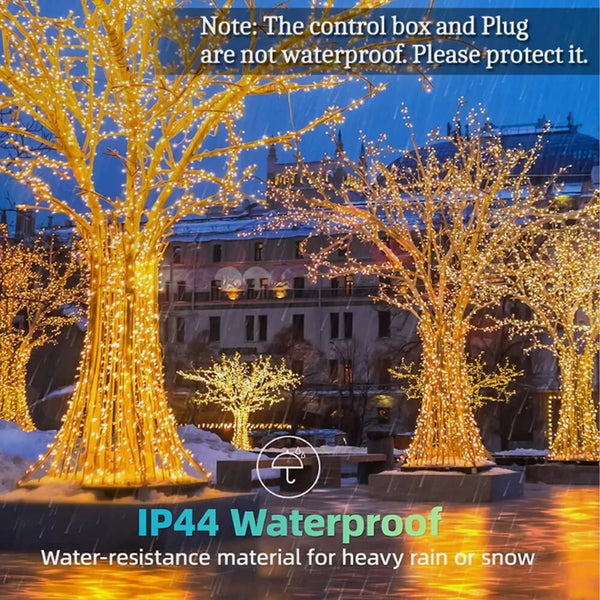 SAFE TO USE INDOOR AND OUTDOOR: Our waterproof led string light has IP44 waterproof grade. Low power consumption, safe and reliable, even don't worry about using these decorative string lights in heavy rain and heavy snow, but warm tips please protect the plug.