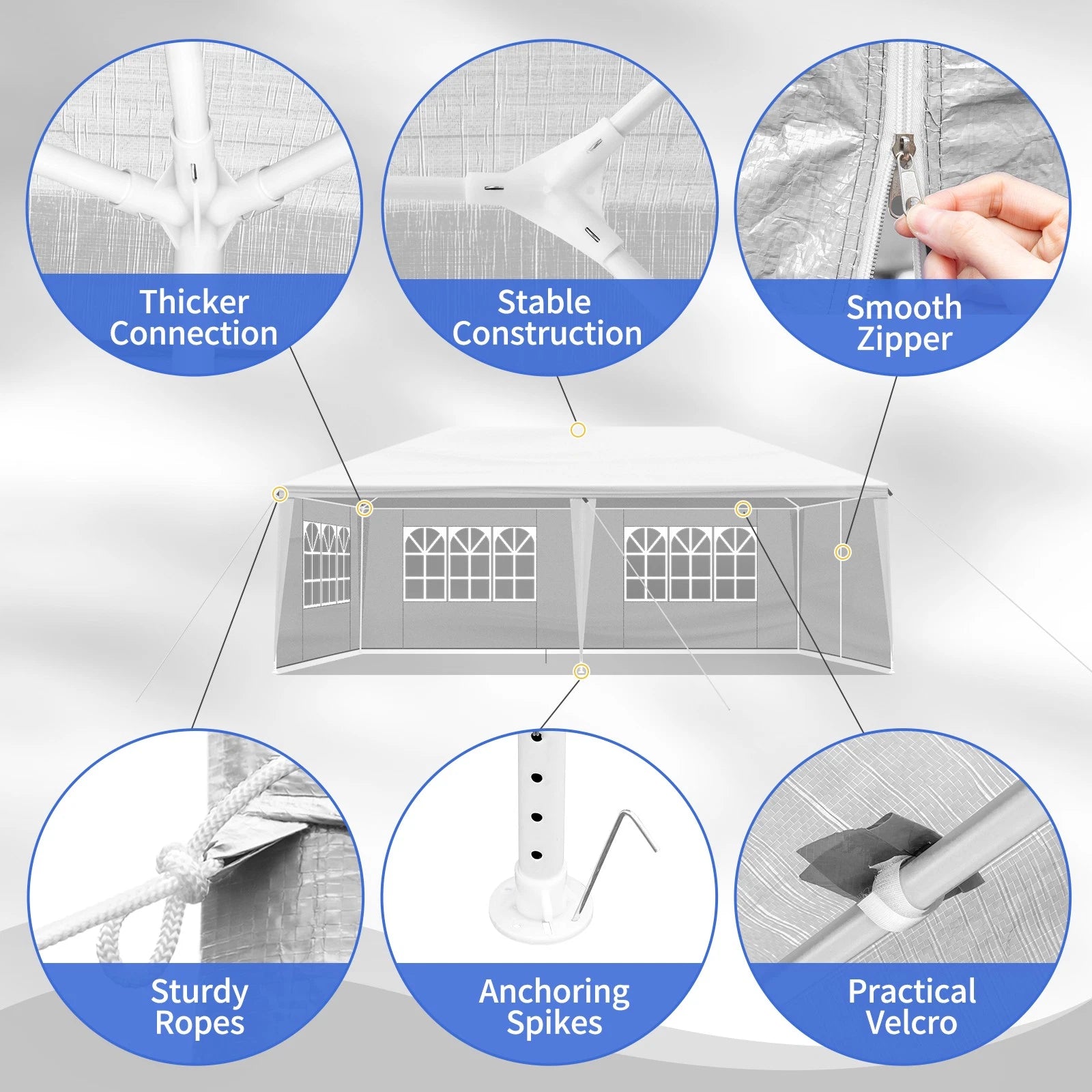 【Big and spacious】10'X20' (3m*6m) outdoor party tent can hold up to 30 people, making it a wonderful choice for a variety of outdoor events like party, wedding, graduation, flea market, small business, picnics, sporting events, arts and crafts tables and much more.