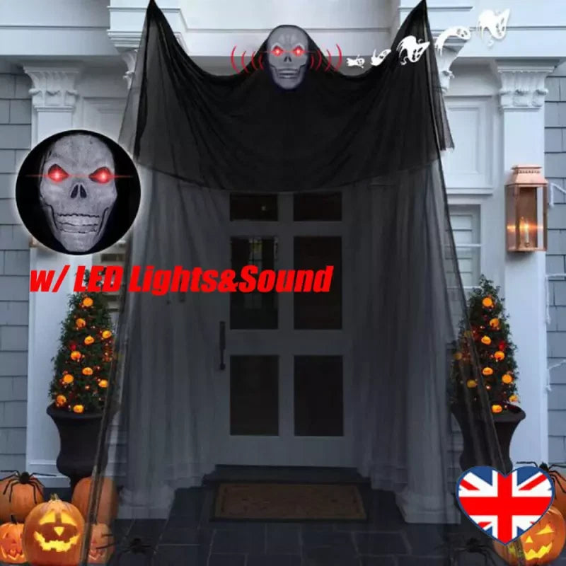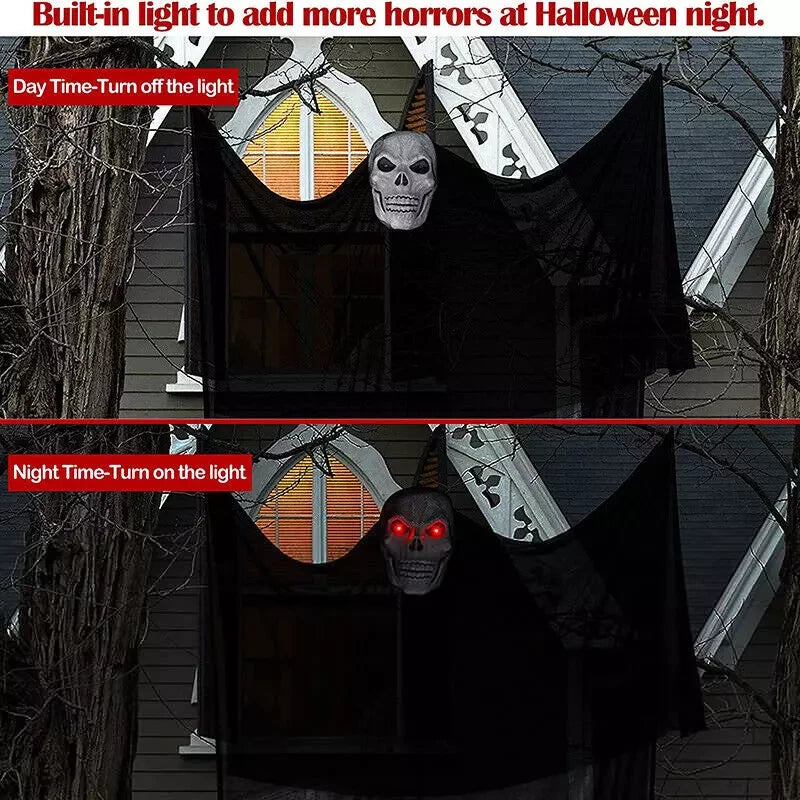 The scary ghost face and flowing fabric create a chilling effect — an ideal addition to your Halloween décor, sure to impress your guests and trick-or-treaters!
