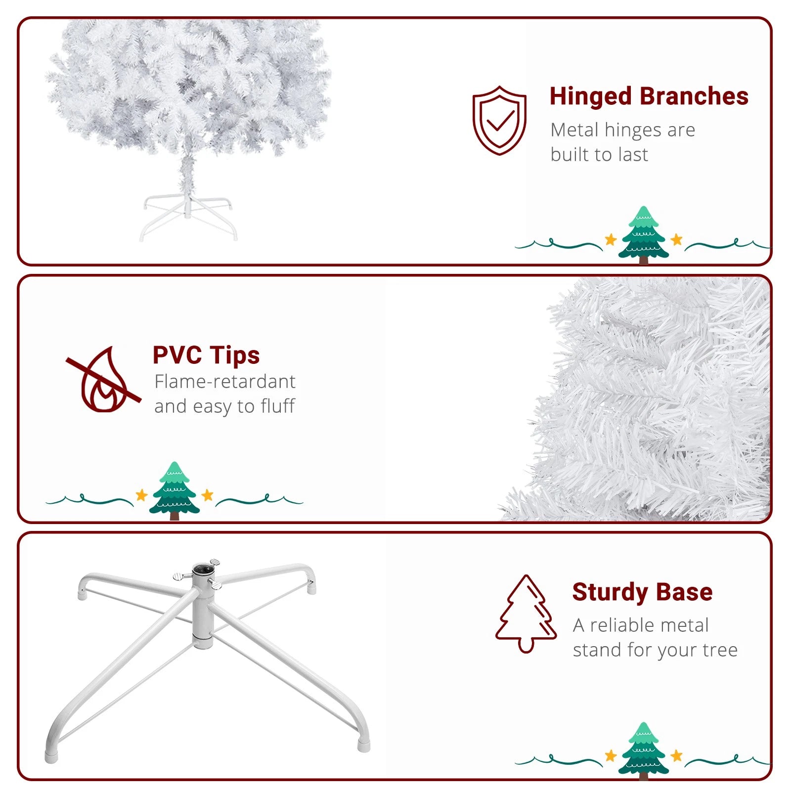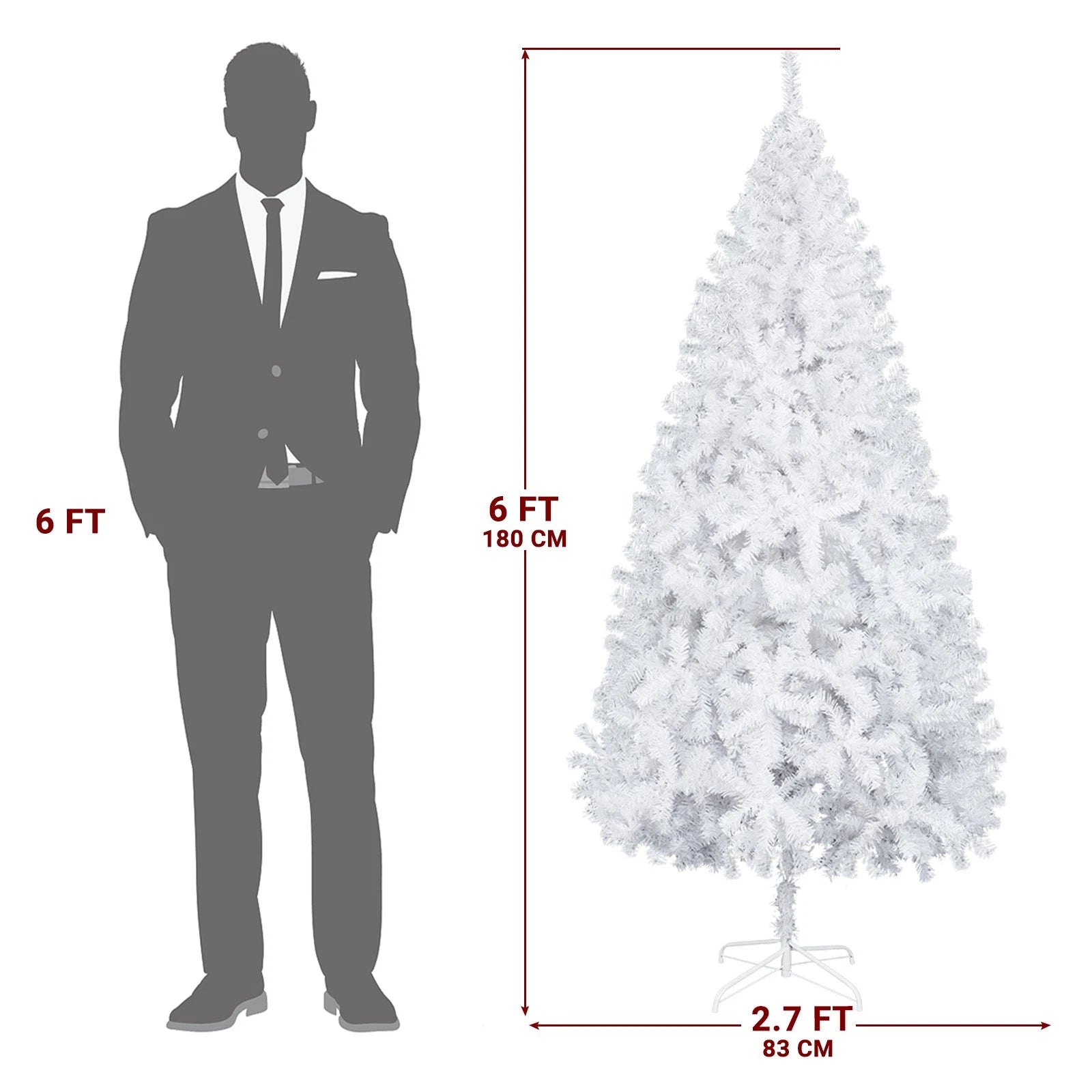 Large 6FT Christmas Tree Artificial Xmas Tree White With Stand Festive Decor