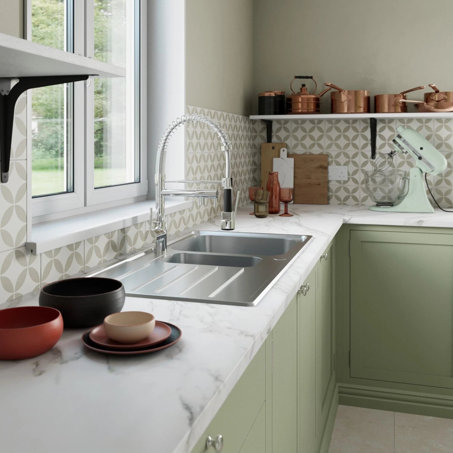 Stunning satin stainless steel 1.5 bowl kitchen sink