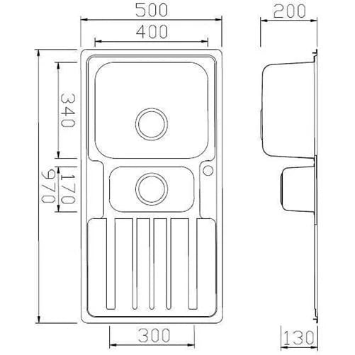 Dimensions: 970mm (W) x 200mm (H) x 500mm (D)